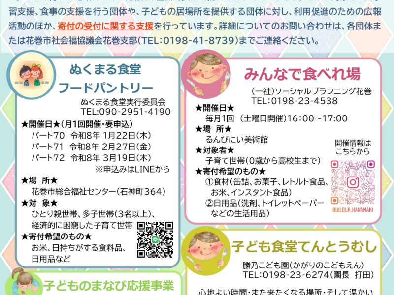 今年度も花巻市社会福祉協議会花巻支部の子どもの支援推進事業のチラシに掲載していただきました! 毎年だんだん増えているような…!? 花巻地域だけでこんなにも支援の輪が広がっていること、嬉しく思います😊 まだご覧になっていな …